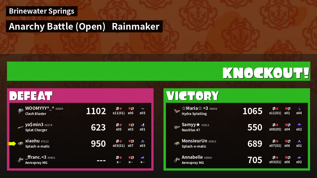| Mode | Rainmaker - Anarchy Battle (Open) | ||