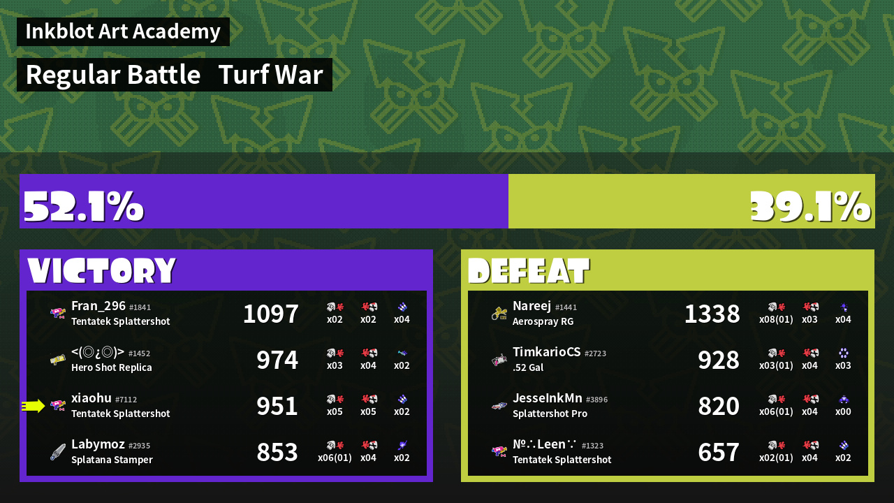 | Mode | Turf War - Regular Battle | ||