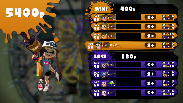 | Tentatek Splattershot | 50 | S+ | 7 / 7 = | 1.00 | 50.0% | |