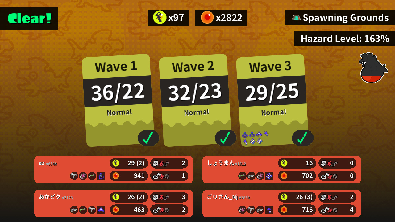 | Weapons | Dynamo Roller Dapple Dualies Bamboozler 14 Mk I | Dapple Dualies Dynamo Roller Ballpoint Splatling | Ballpoint Splatling Bamboozler 14 Mk I Dynamo Roller | Bamboozler 14 Mk I Ballpoint Splatling Dapple Dualies |