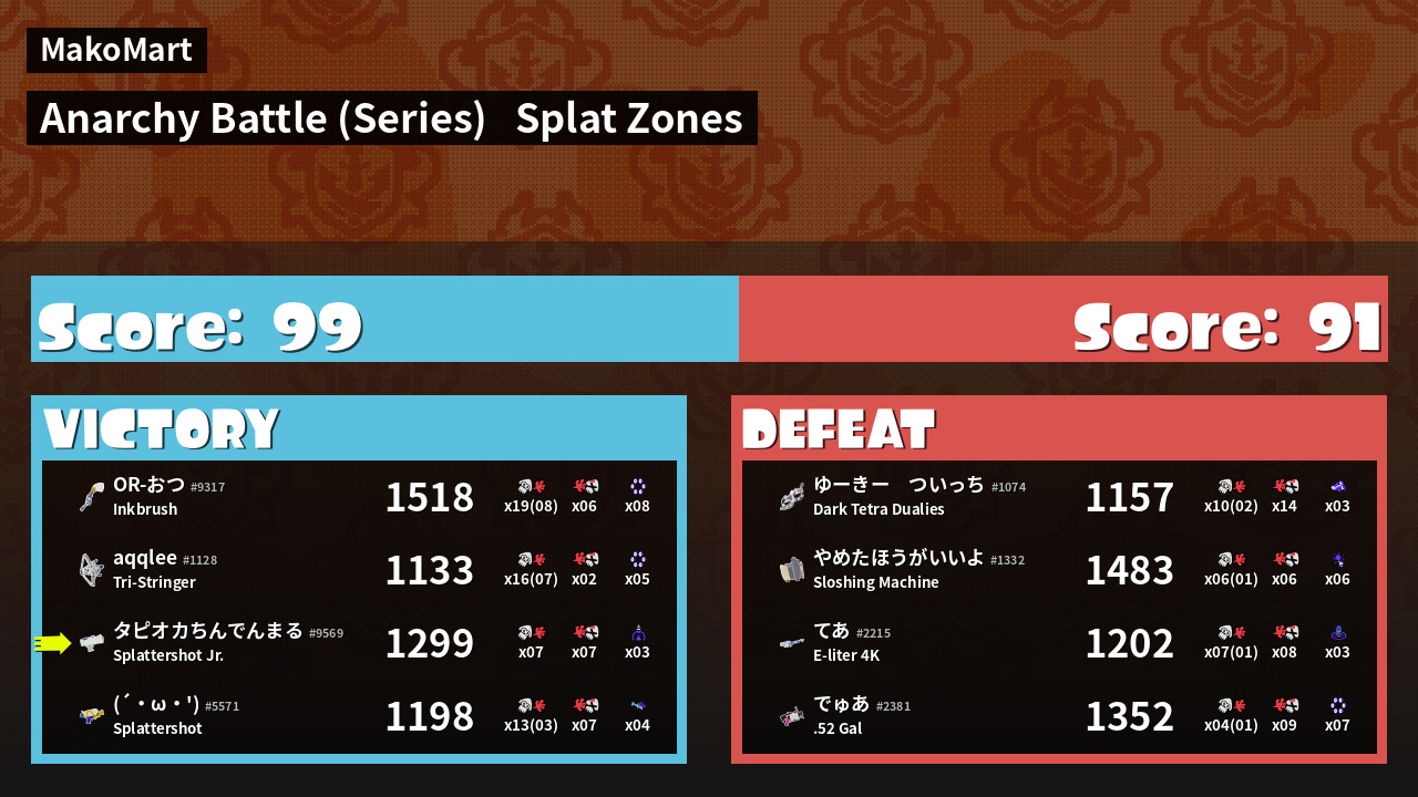 Results of タピオカ's Battle