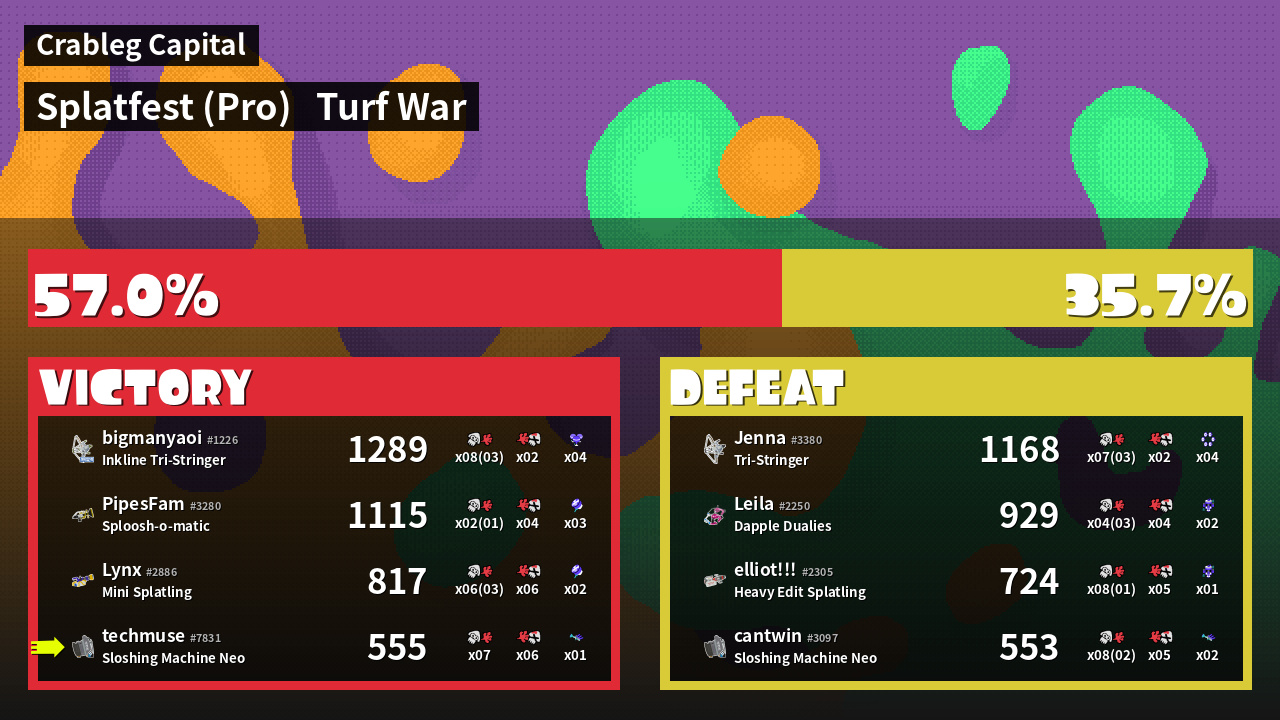 | Medals | #1 Enemy Splatter First Splat! #1 Trizooka User | ||