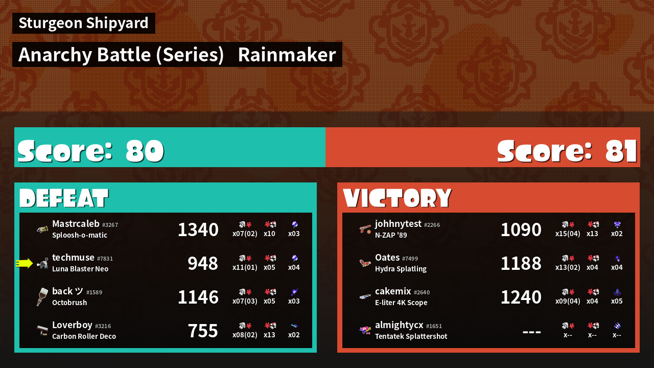 | Medals | #1 Overall Splatter #1 Enemy Splatter #1 Rainmaker Stopper | ||