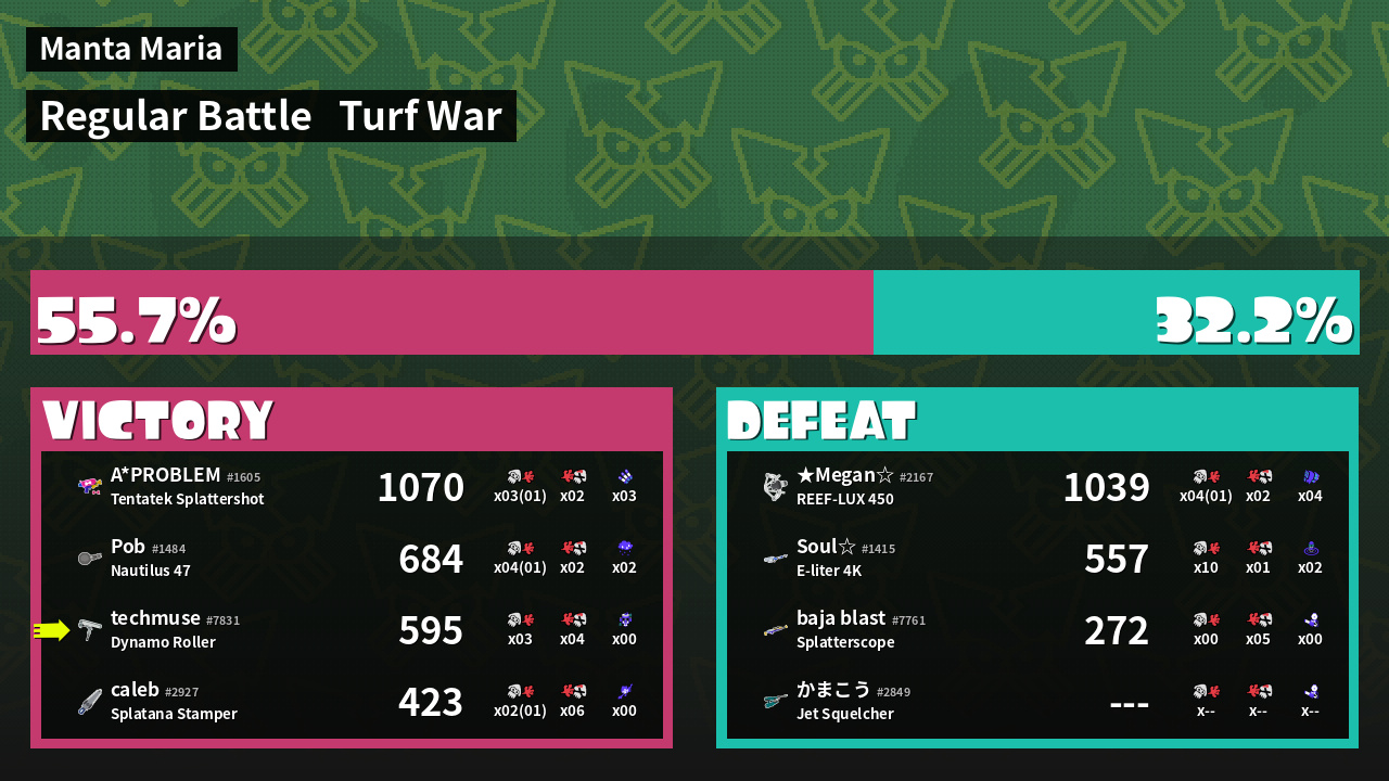 | Medals | #1 Popular Target #1 Enemy-Base Inker #1 Enemy Splatter | ||