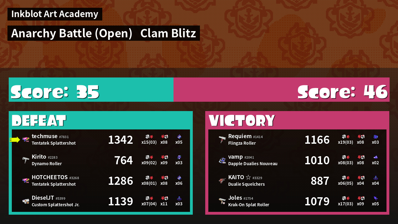 | Mode | Clam Blitz - Anarchy Battle (Open) | ||