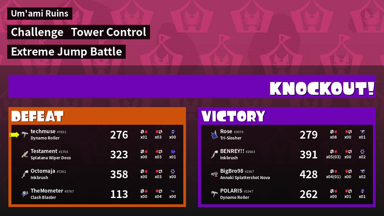 | Medals | #1 Overall Splatter #1 Popular Target #1 Enemy Splatter | ||