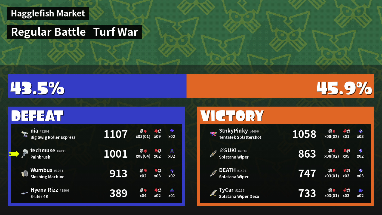 | Medals | #1 Overall Splatter #1 Popular Target #1 Home-Base Inker | ||