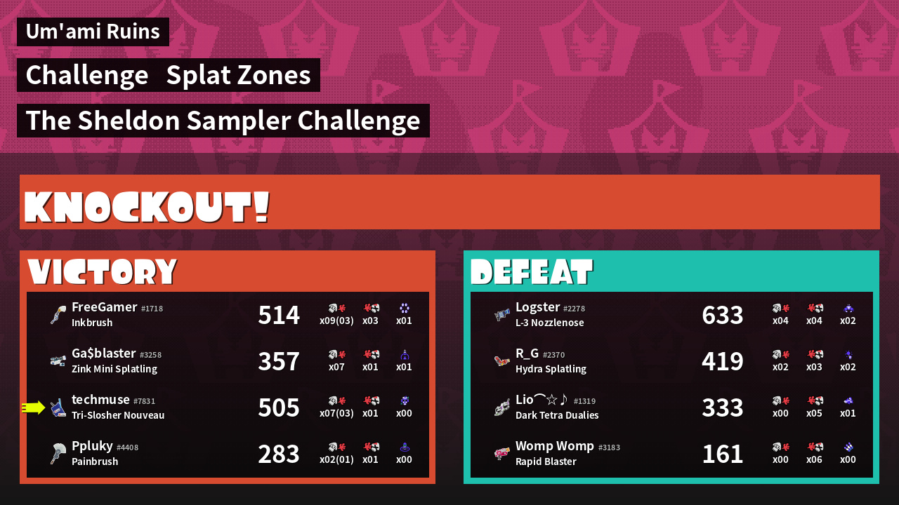 | Medals | #1 Splat Zone Inker #1 Splat Assister #1 Ink Consumer | ||