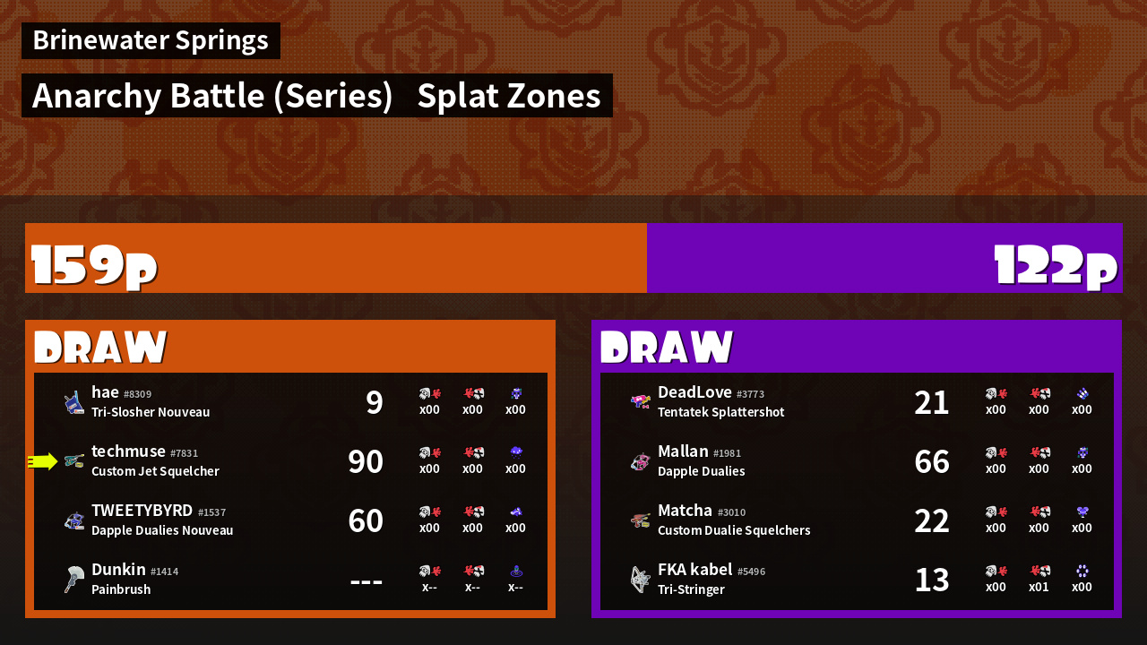 | Mode | Splat Zones - Anarchy Battle (Series) | ||