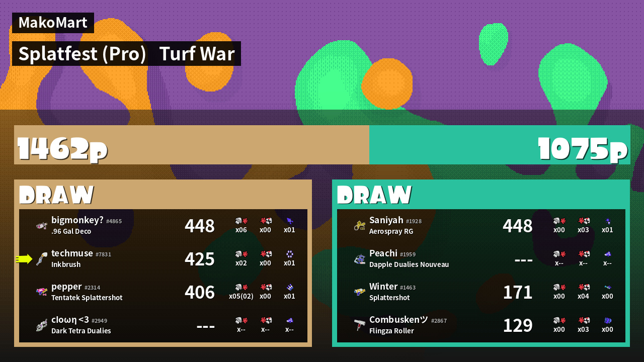 | Mode | Turf War - Splatfest (Pro) | ||