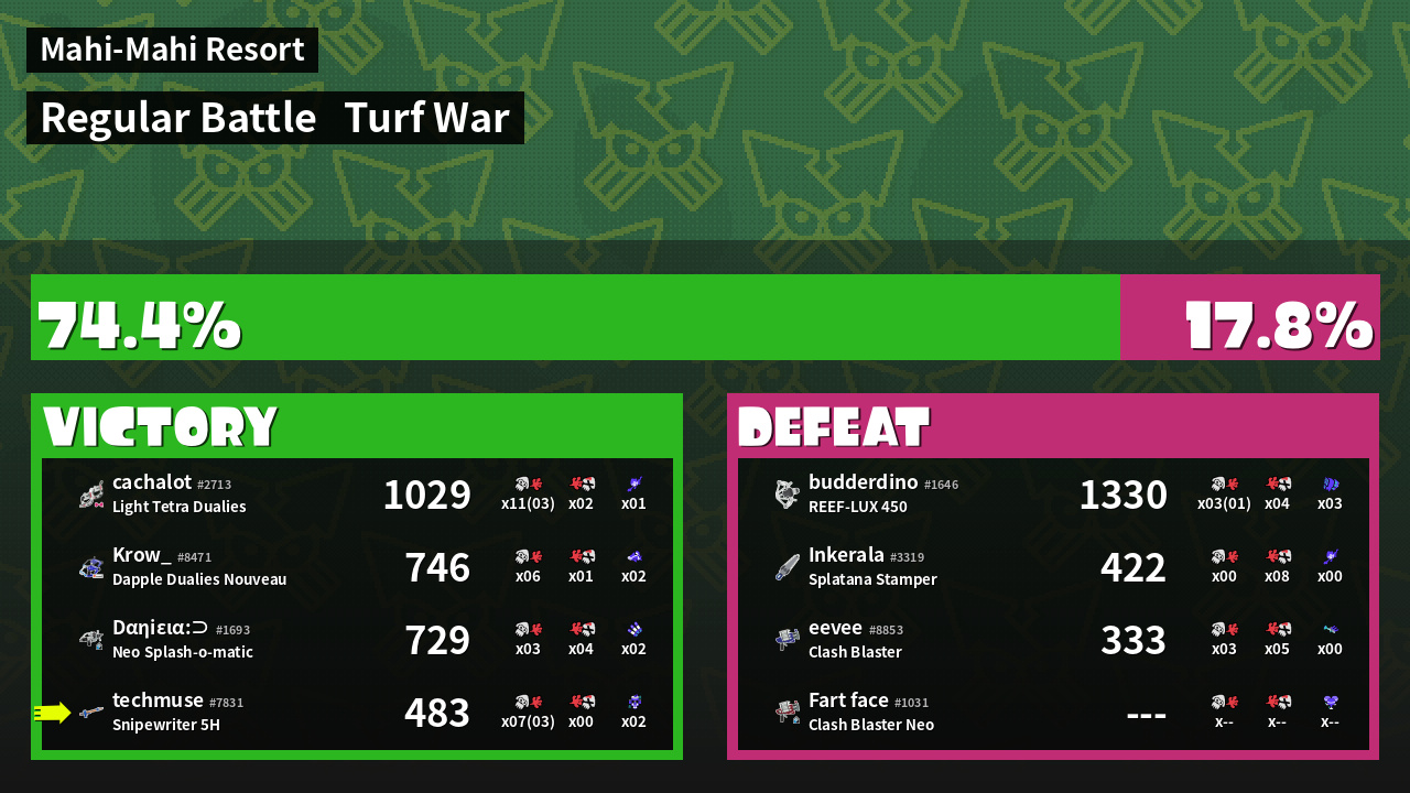 | Medals | #1 Popular Target #1 Super Jump Spot #1 Splat Assister | ||