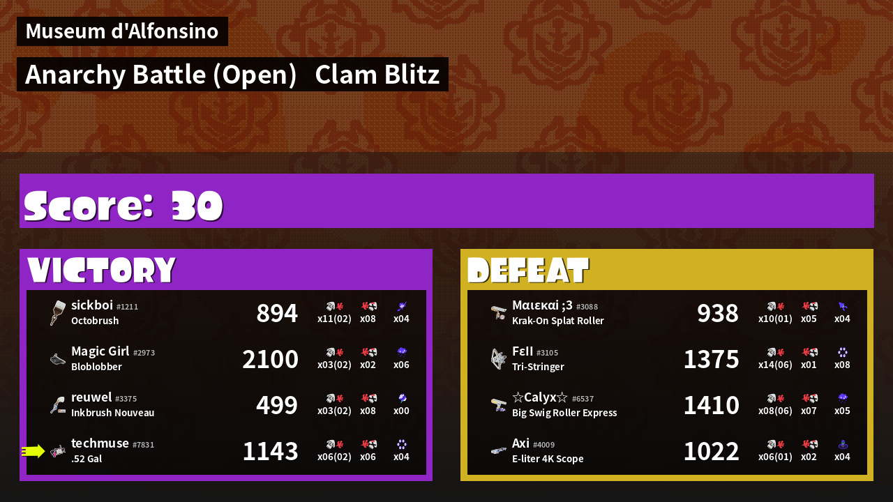 | Mode | Clam Blitz - Anarchy Battle (Open) | ||
