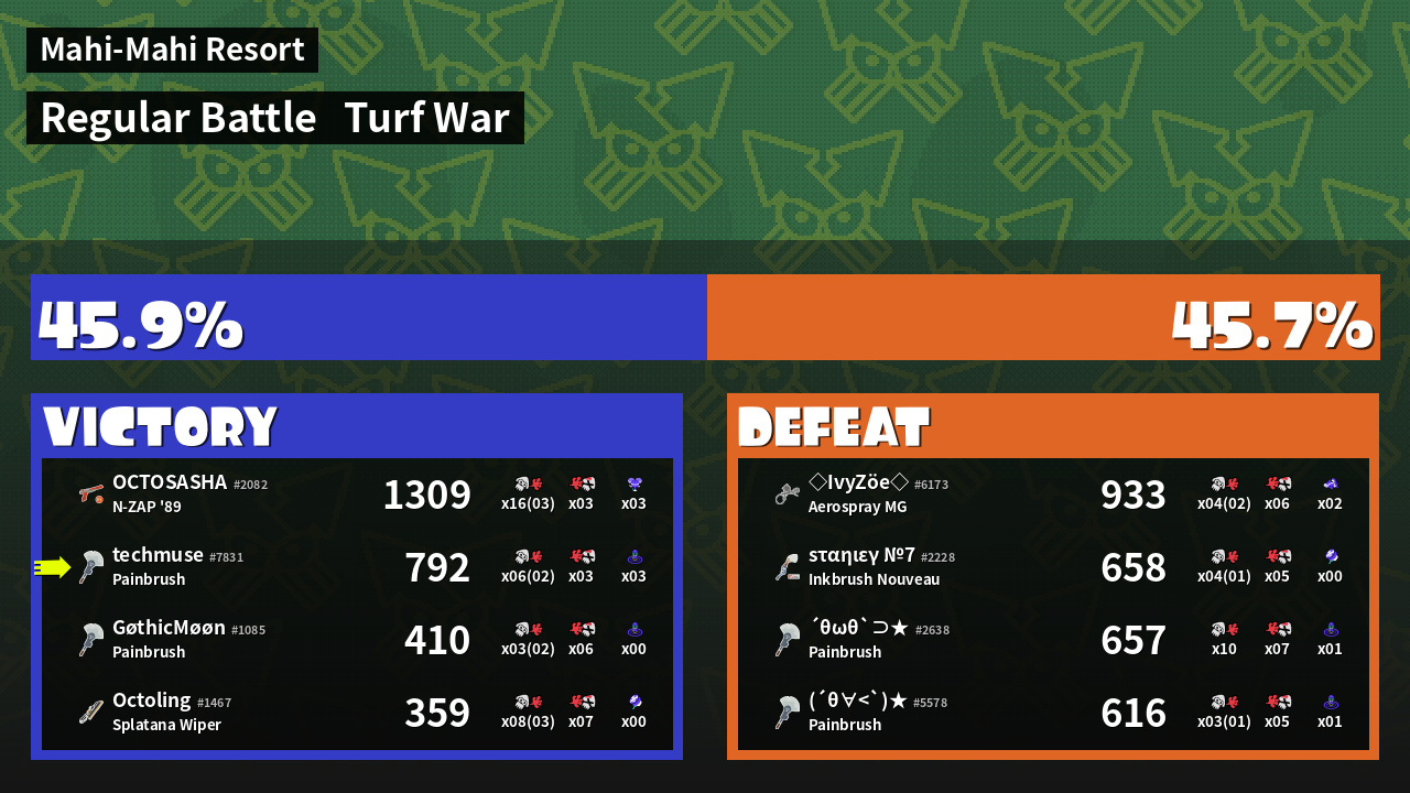 | Mode | Turf War - Regular Battle | ||