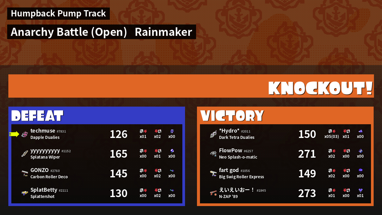 | Mode | Rainmaker - Anarchy Battle (Open) | ||