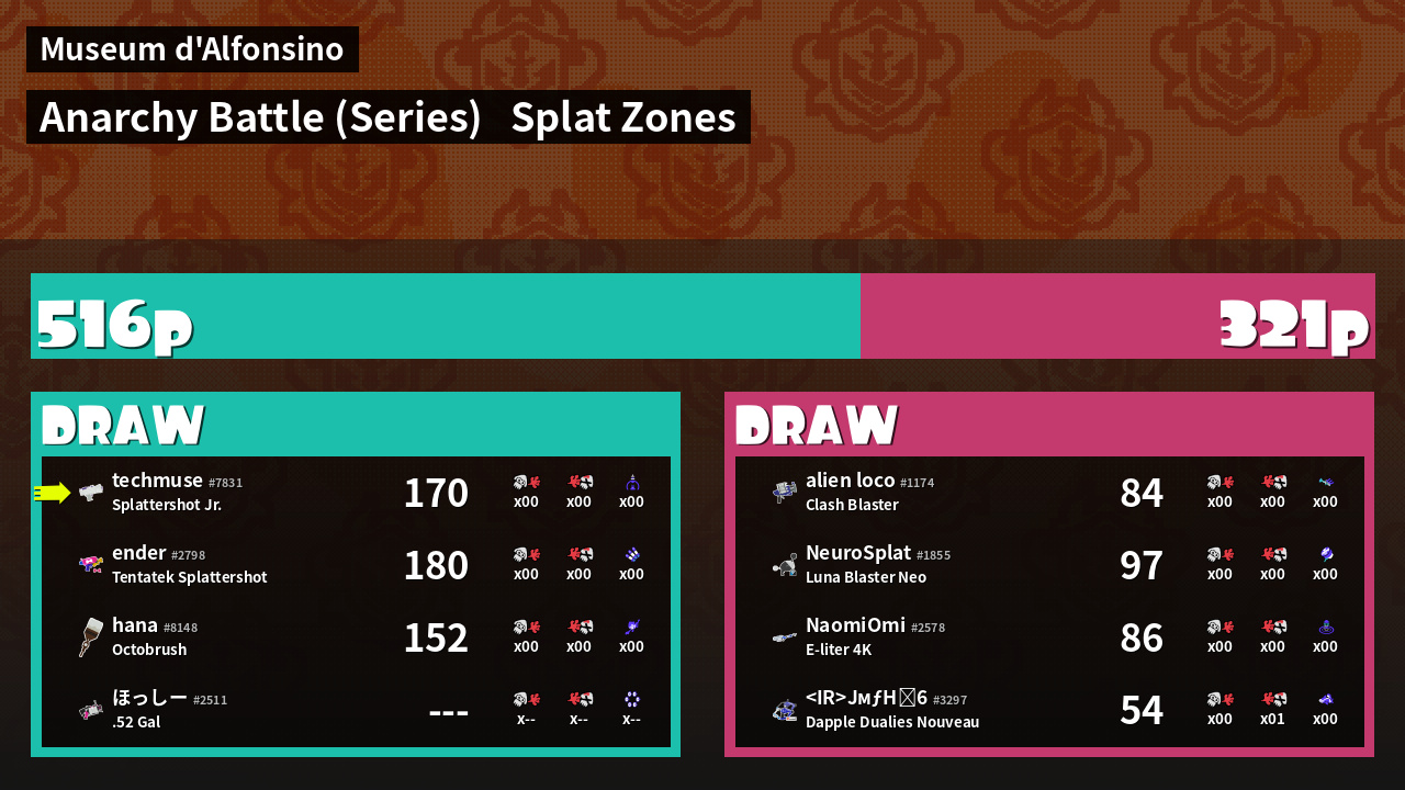 | Mode | Splat Zones - Anarchy Battle (Series) | ||