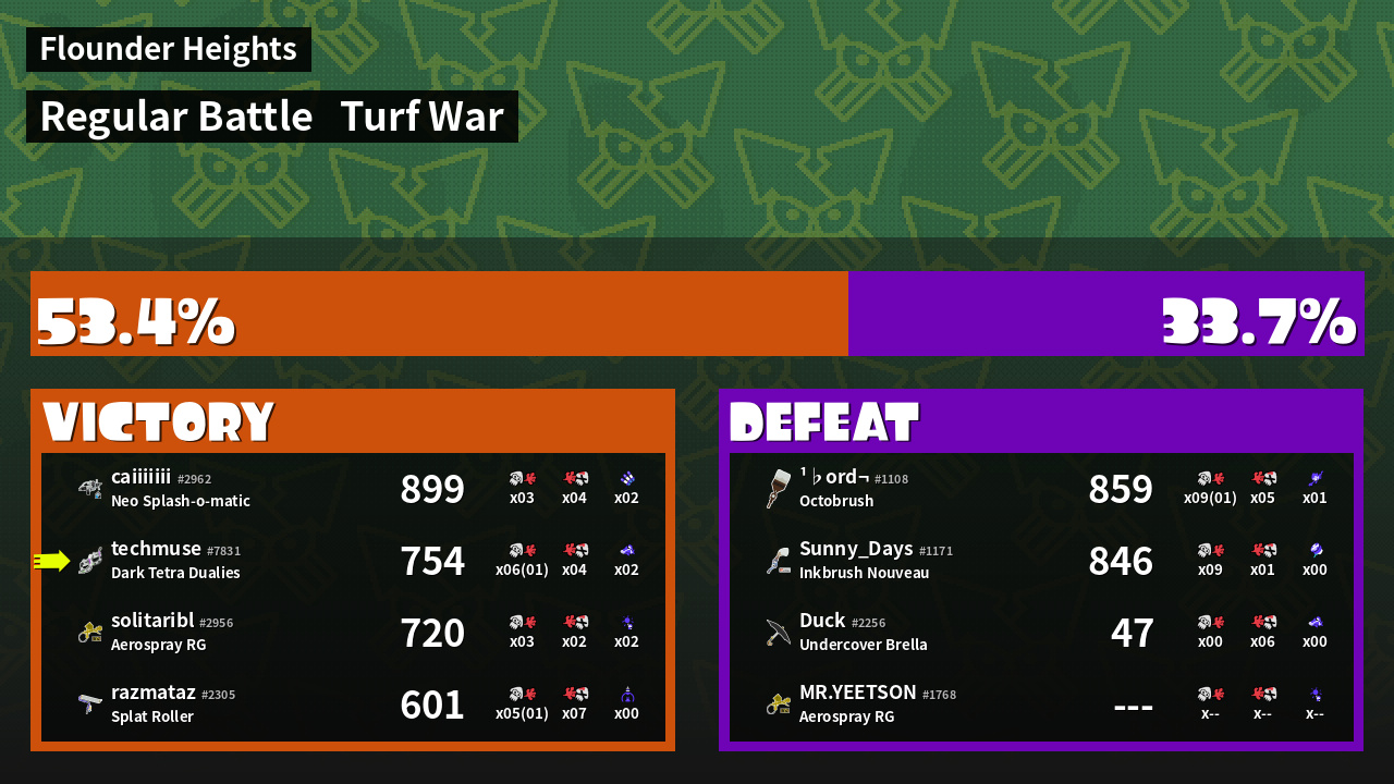 | Mode | Turf War - Regular Battle | ||