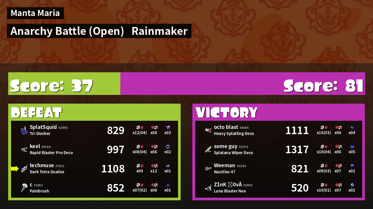 | Mode | Rainmaker - Anarchy Battle (Open) | ||