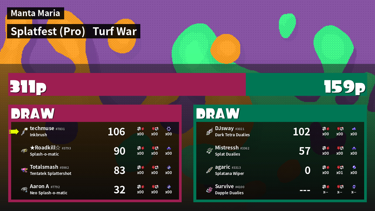 | Mode | Turf War - Splatfest (Pro) | ||