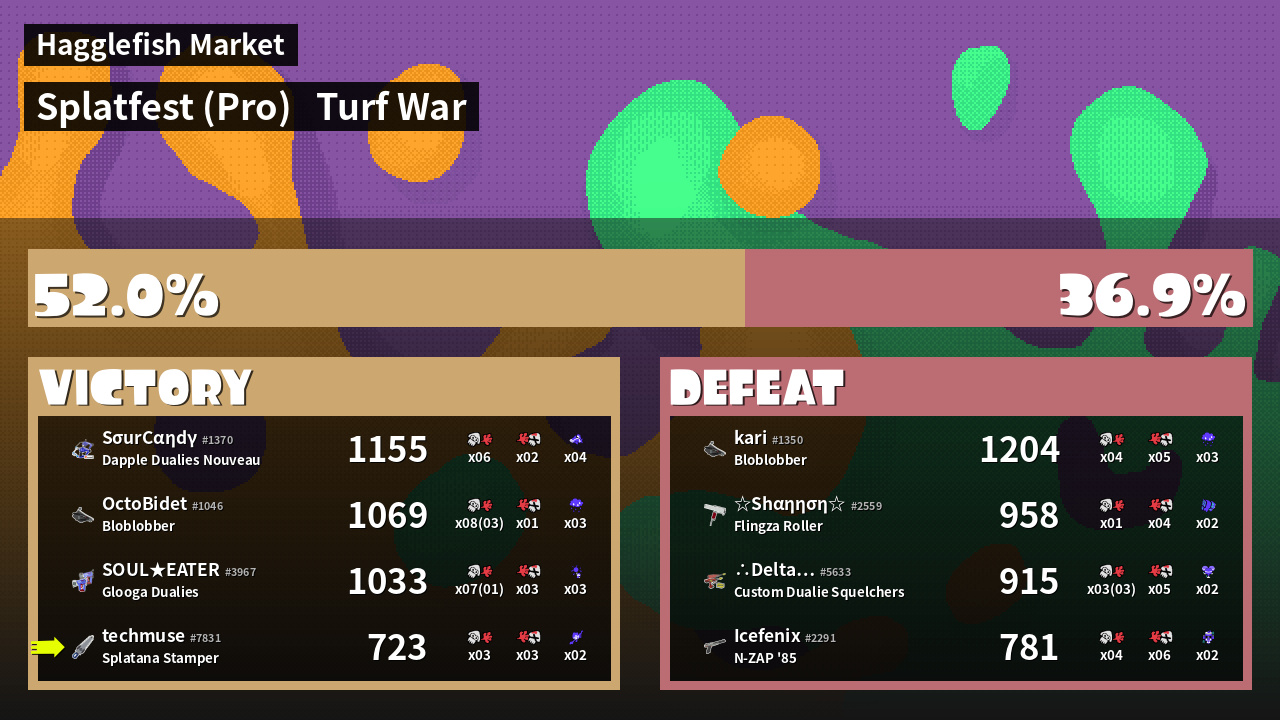 | Mode | Turf War - Splatfest (Pro) | ||