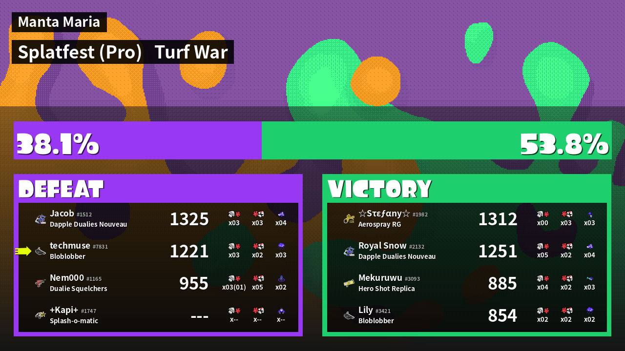 | Medals | #1 Overall Splatter #1 Home-Base Inker #1 Enemy Splatter | ||