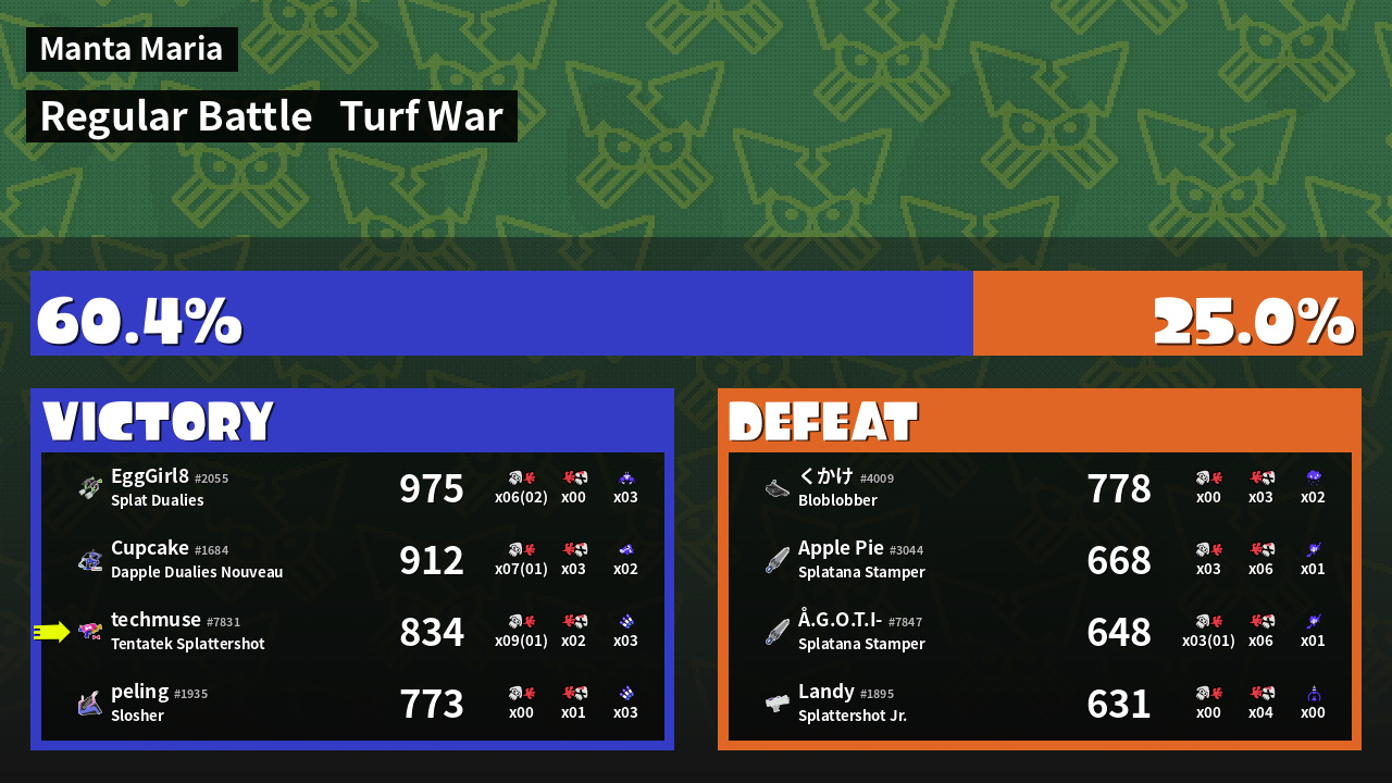 | Medals | #1 Overall Splatter #1 Enemy-Base Inker #1 Enemy Splatter | ||