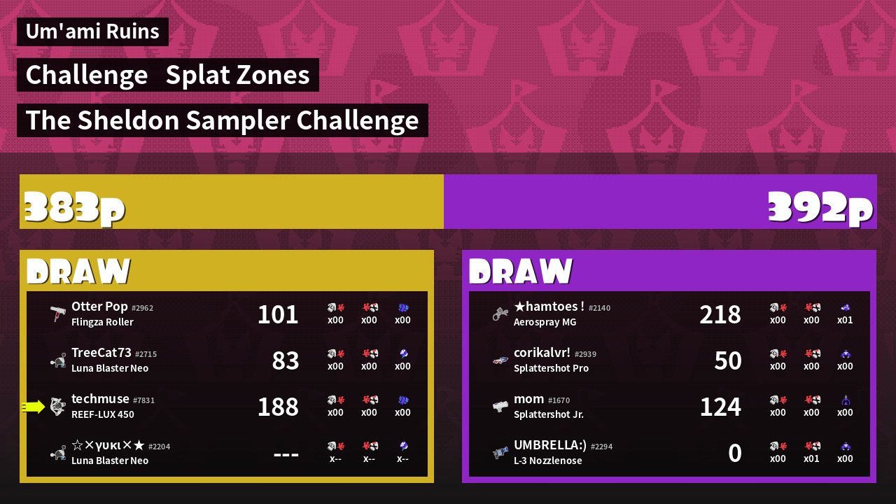 | Challenge | The Sheldon Sampler Challenge Make the most of random weapons! | ||