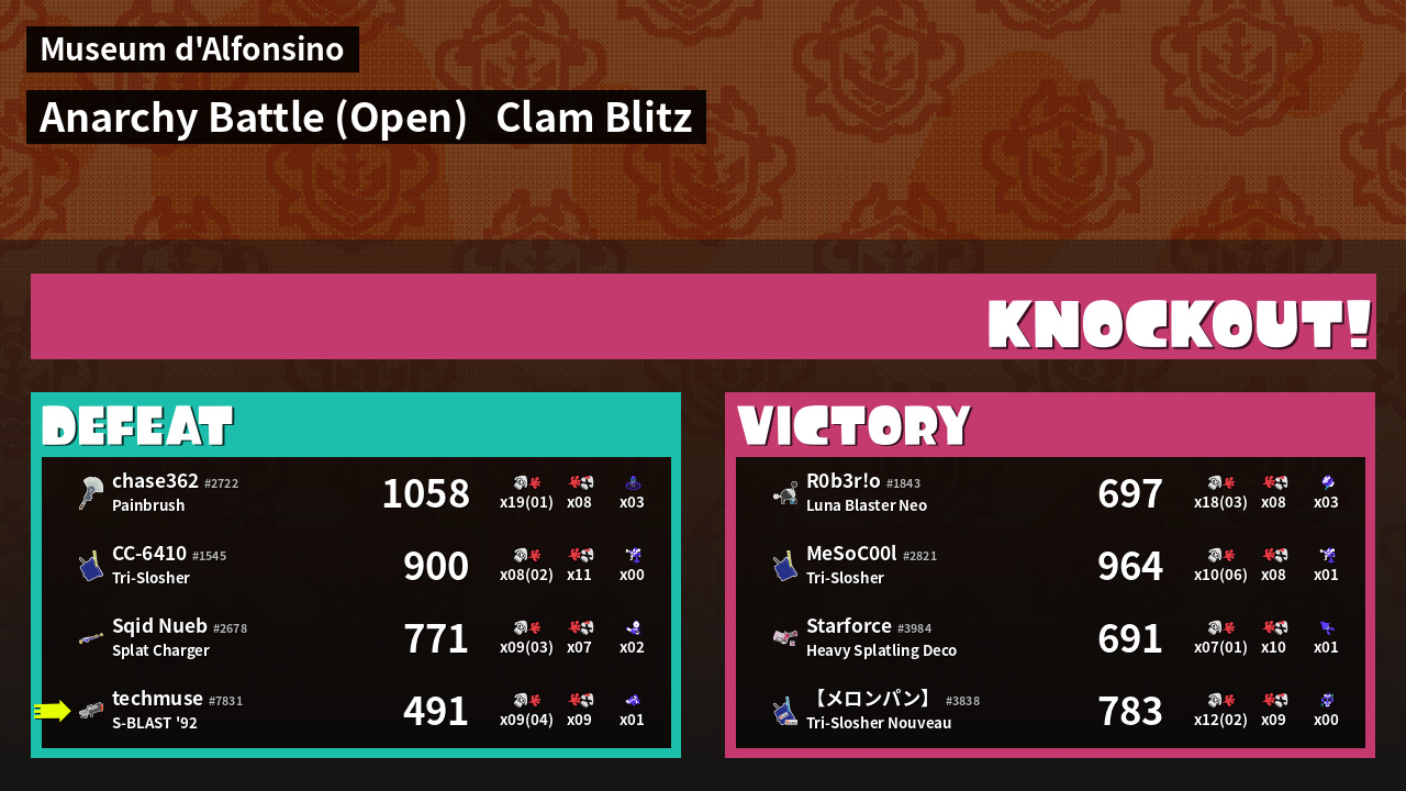 | Mode | Clam Blitz - Anarchy Battle (Open) | ||