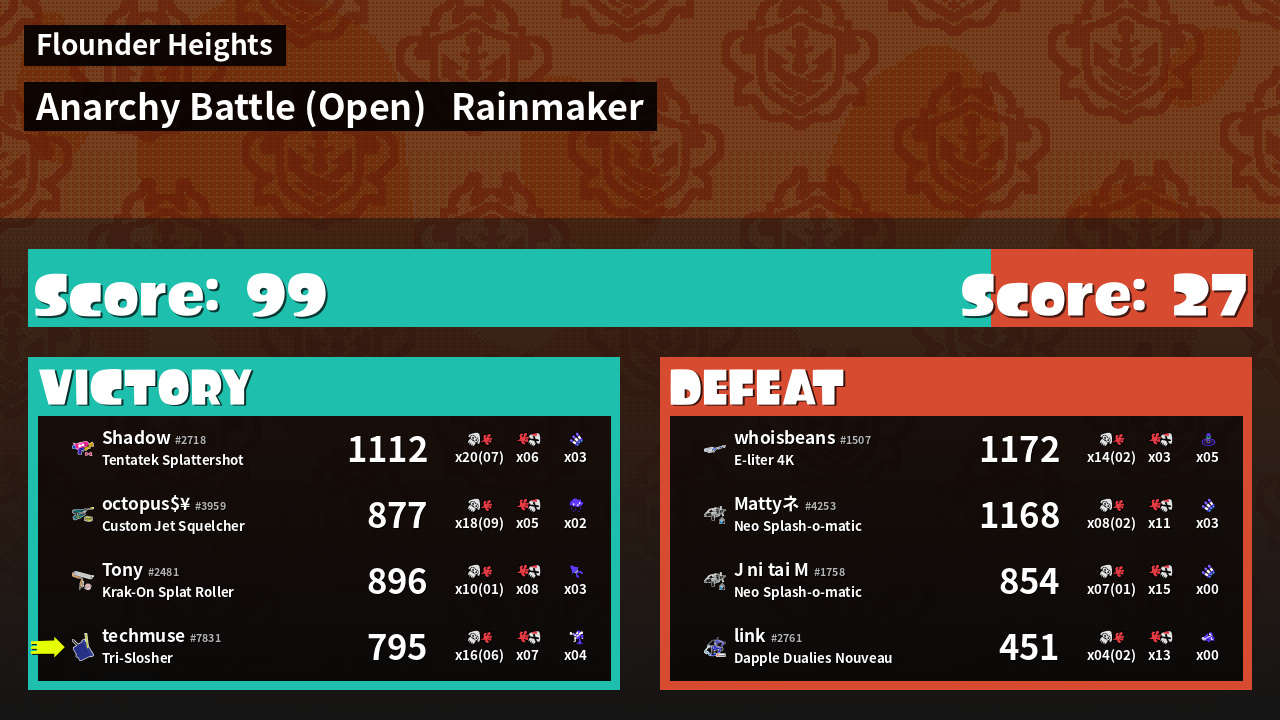 | Mode | Rainmaker - Anarchy Battle (Open) | ||
