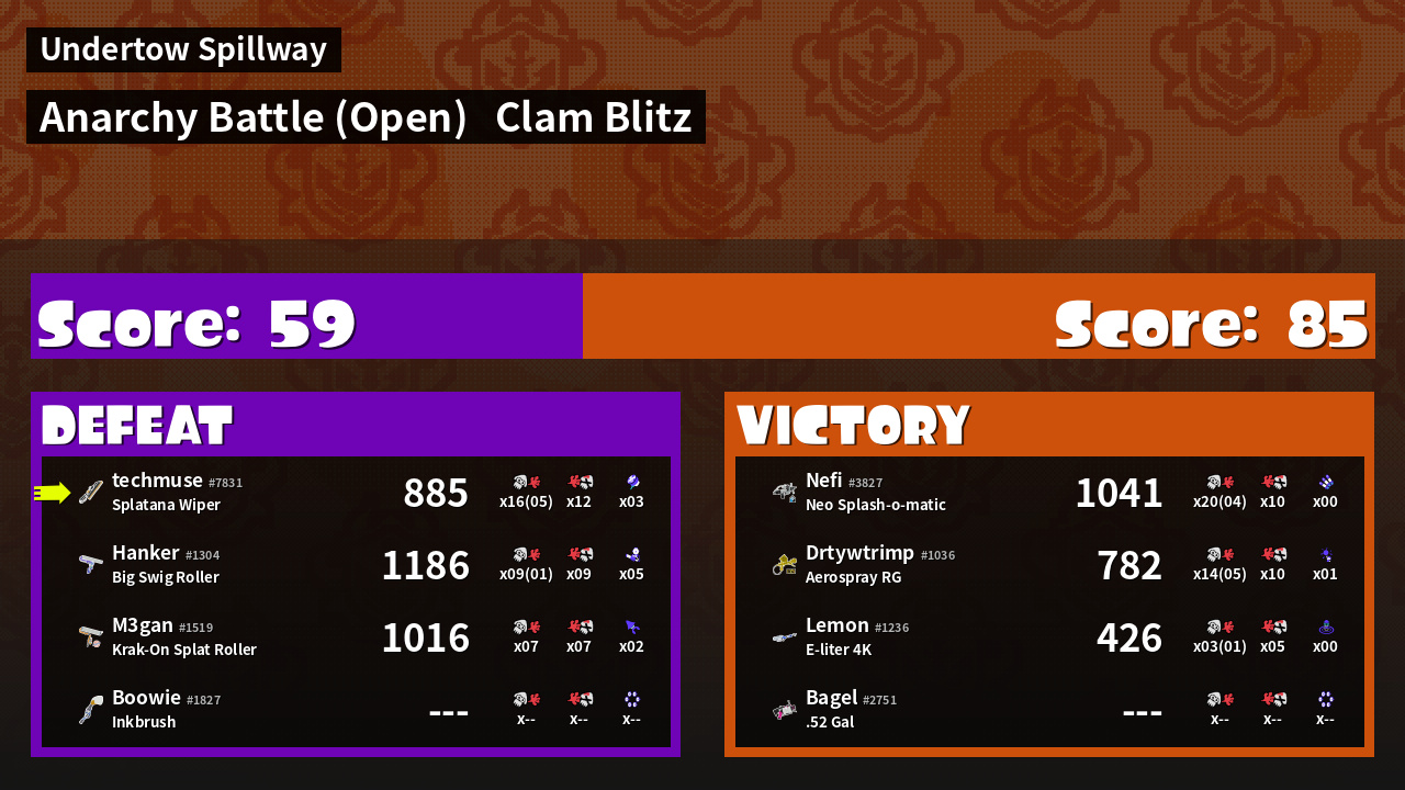 | Mode | Clam Blitz - Anarchy Battle (Open) | ||