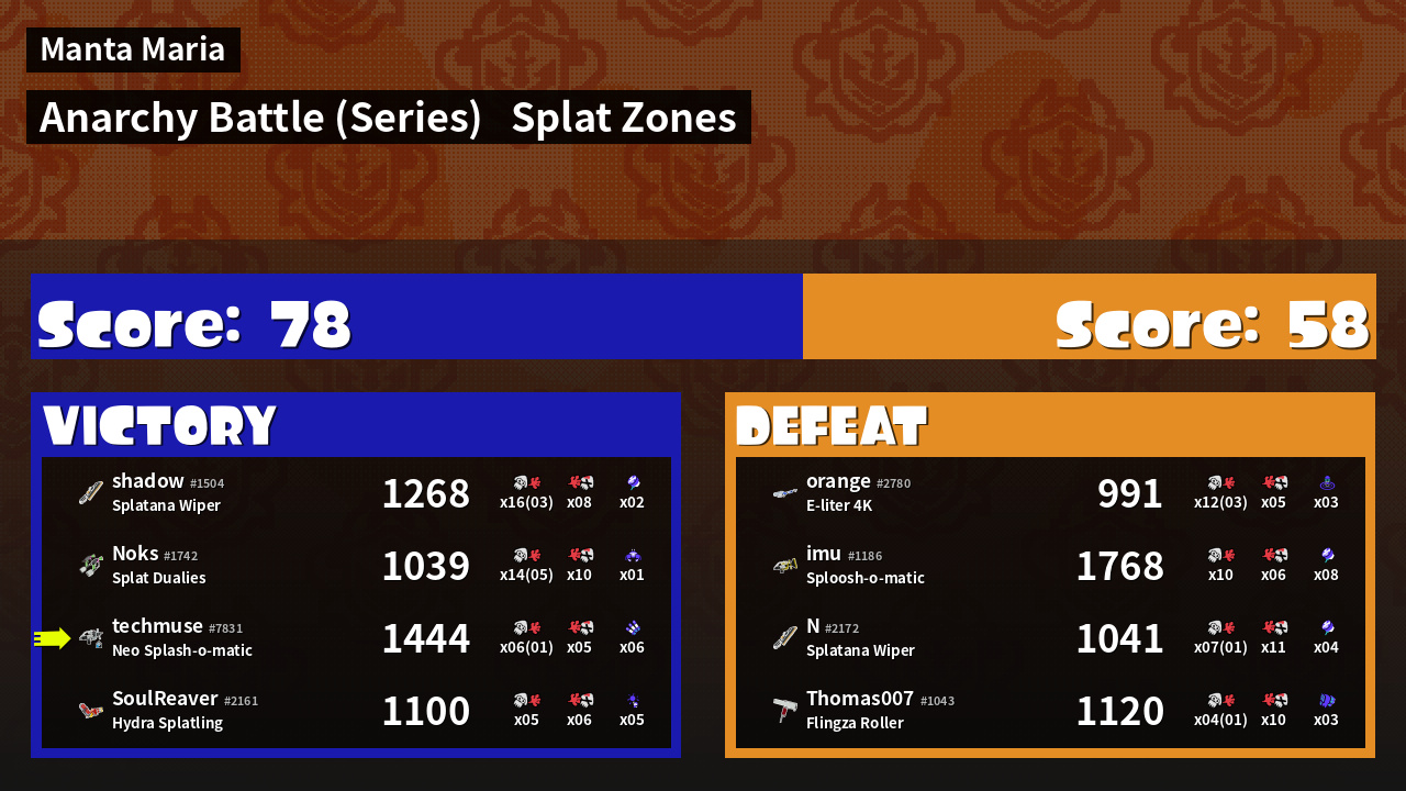 | Mode | Splat Zones - Anarchy Battle (Series) | ||
