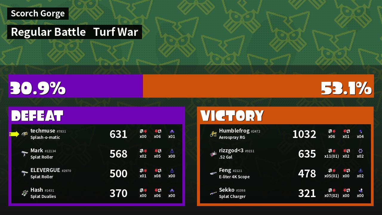 | Mode | Turf War - Regular Battle | ||