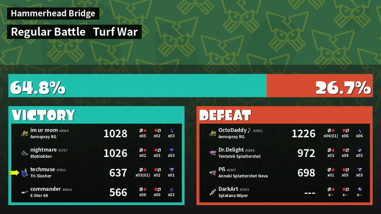 | Medals | #1 Splat Assister #1 Inkjet User #2 Home-Base Inker | ||