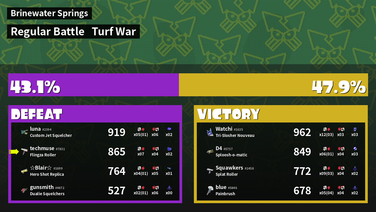 | Mode | Turf War - Regular Battle | ||