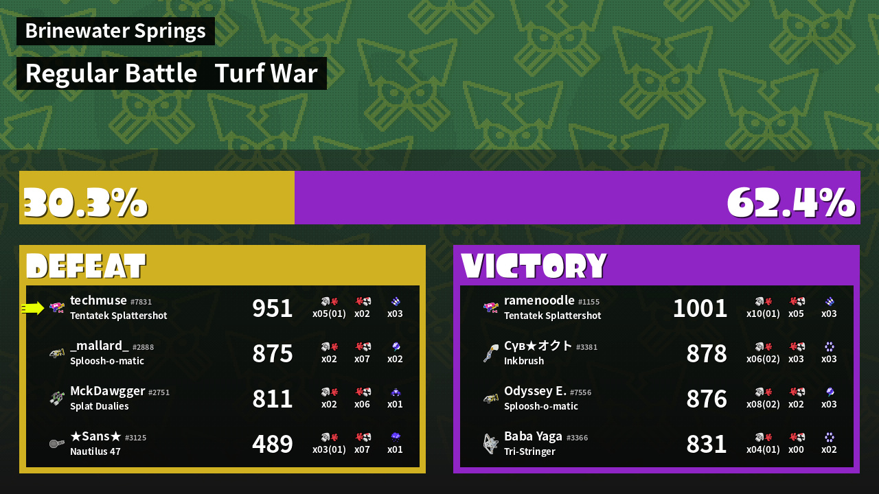 | Mode | Turf War - Regular Battle | ||