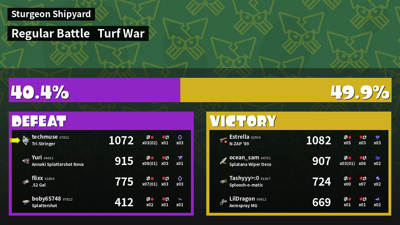| Mode | Turf War - Regular Battle | ||