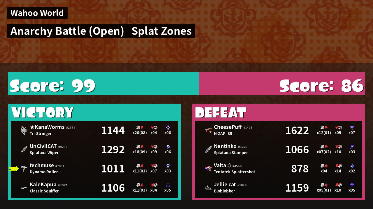 | Mode | Splat Zones - Anarchy Battle (Open) | ||