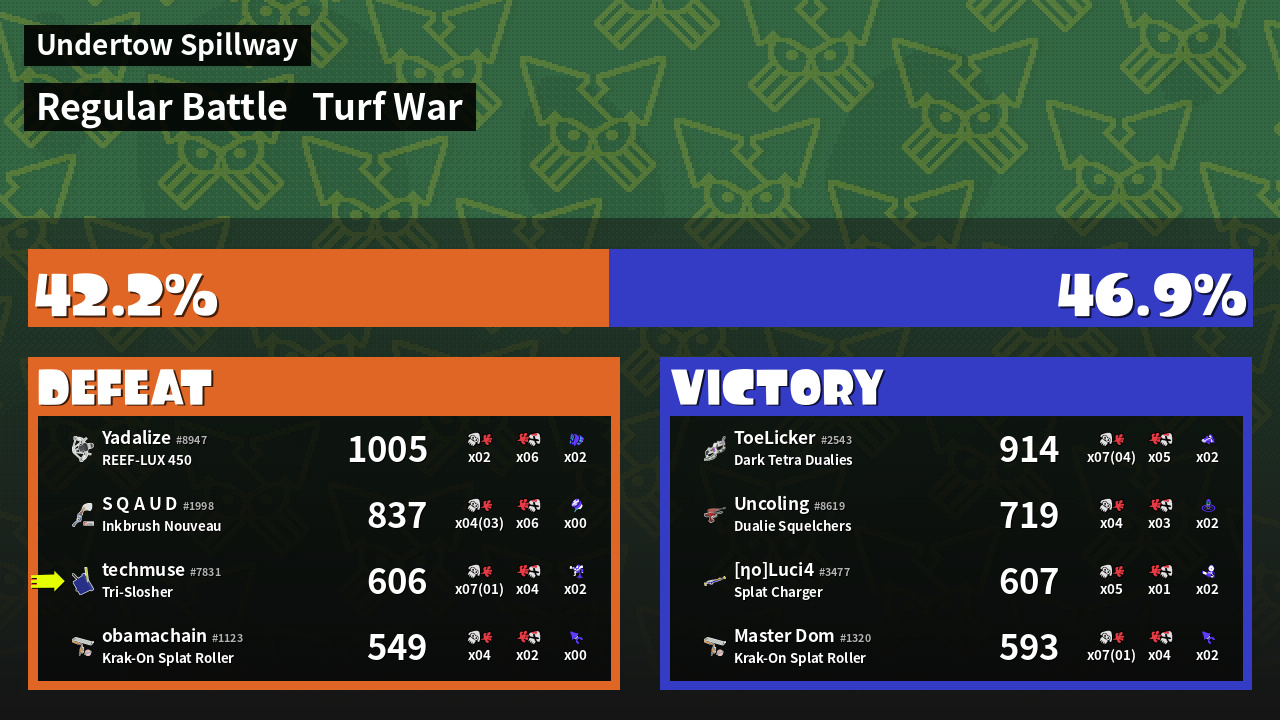 | Medals | #1 Overall Splatter #1 Enemy Splatter #1 Damage Taker | ||