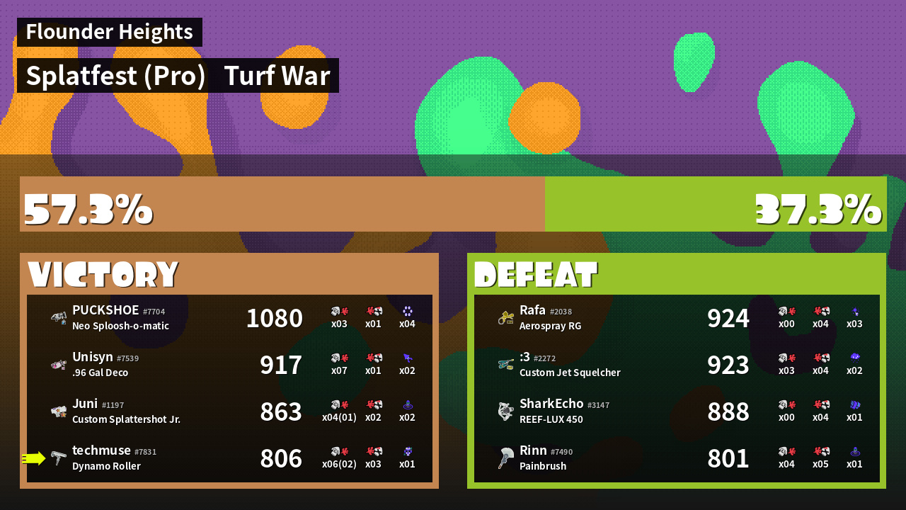 | Medals | #1 Splat Assister #1 Base Defender #1 Tacticooler User | ||
