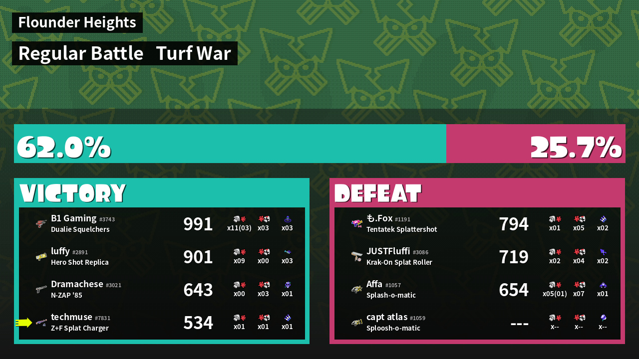 | Weapon | Z+F Splat Charger ( Splash Wall / Triple Inkstrike) | ||