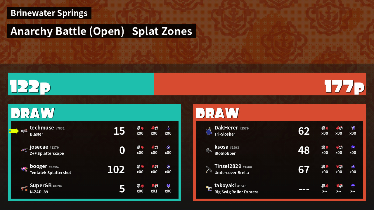 | Mode | Splat Zones - Anarchy Battle (Open) | ||