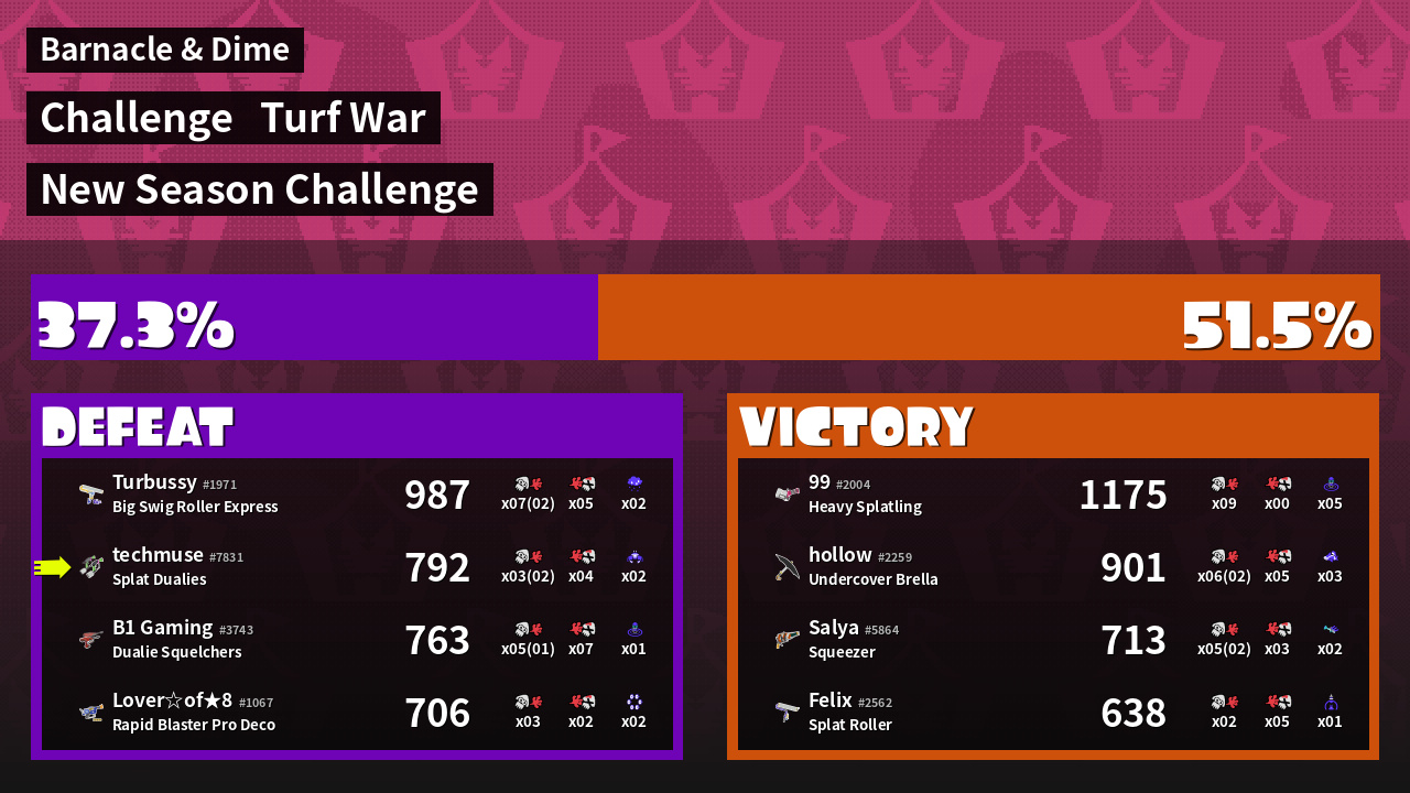 | Medals | #1 Splat Assister #1 Ink Consumer #2 Turf Inker | ||