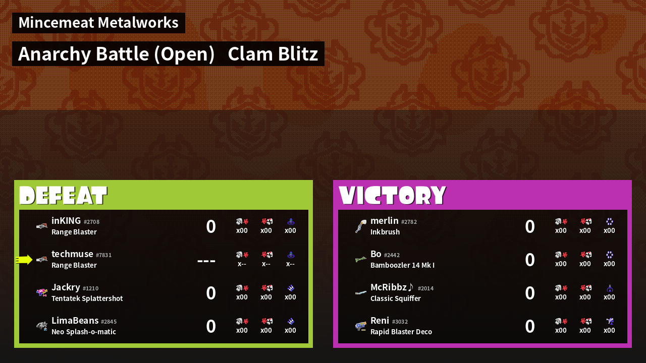 | Mode | Clam Blitz - Anarchy Battle (Open) | ||