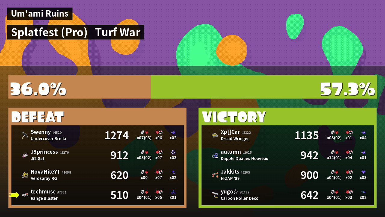 | Medals | #1 Base Defender #1 Damage Taker #1 Ink Consumer | ||