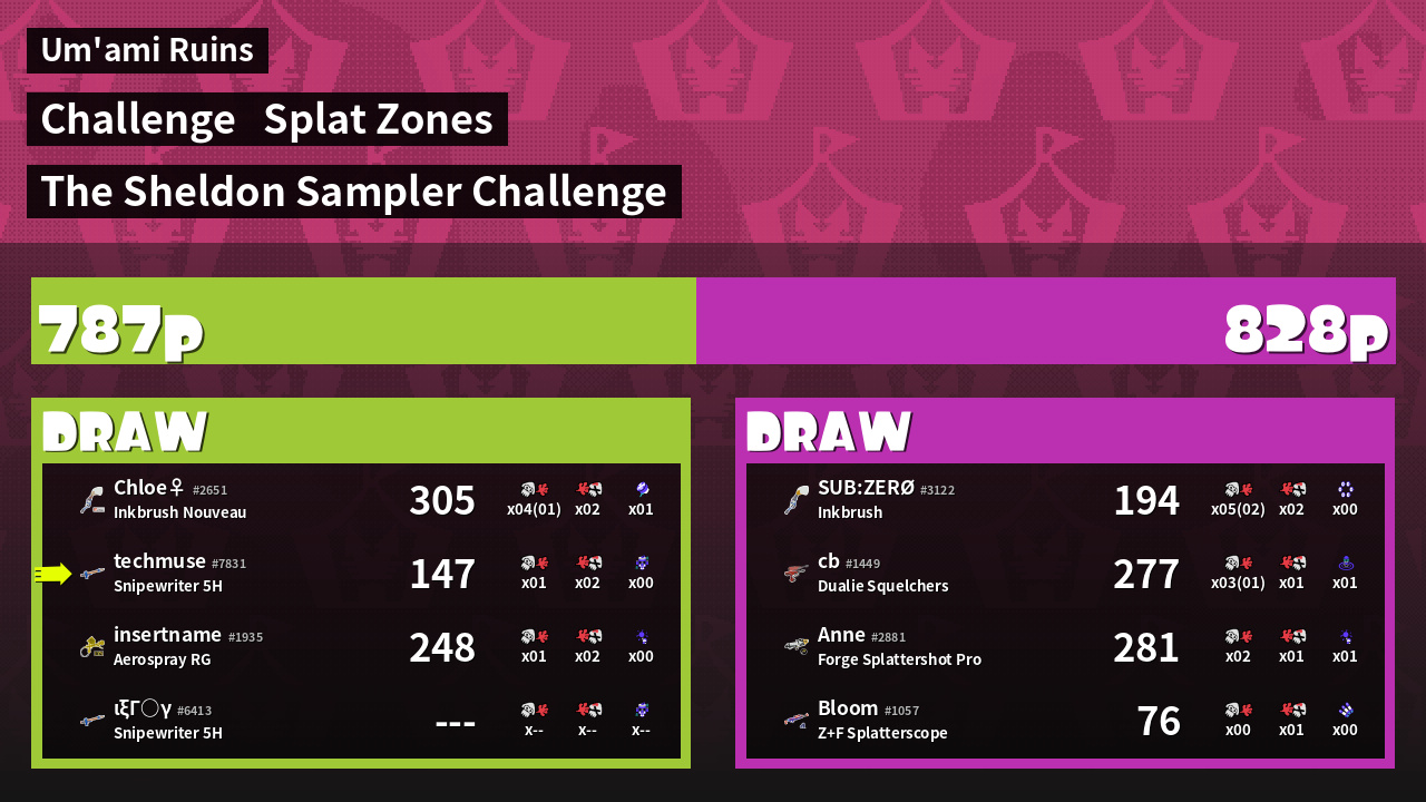 | Challenge | The Sheldon Sampler Challenge Make the most of random weapons! | ||