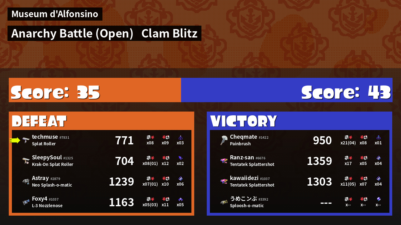 | Mode | Clam Blitz - Anarchy Battle (Open) | ||