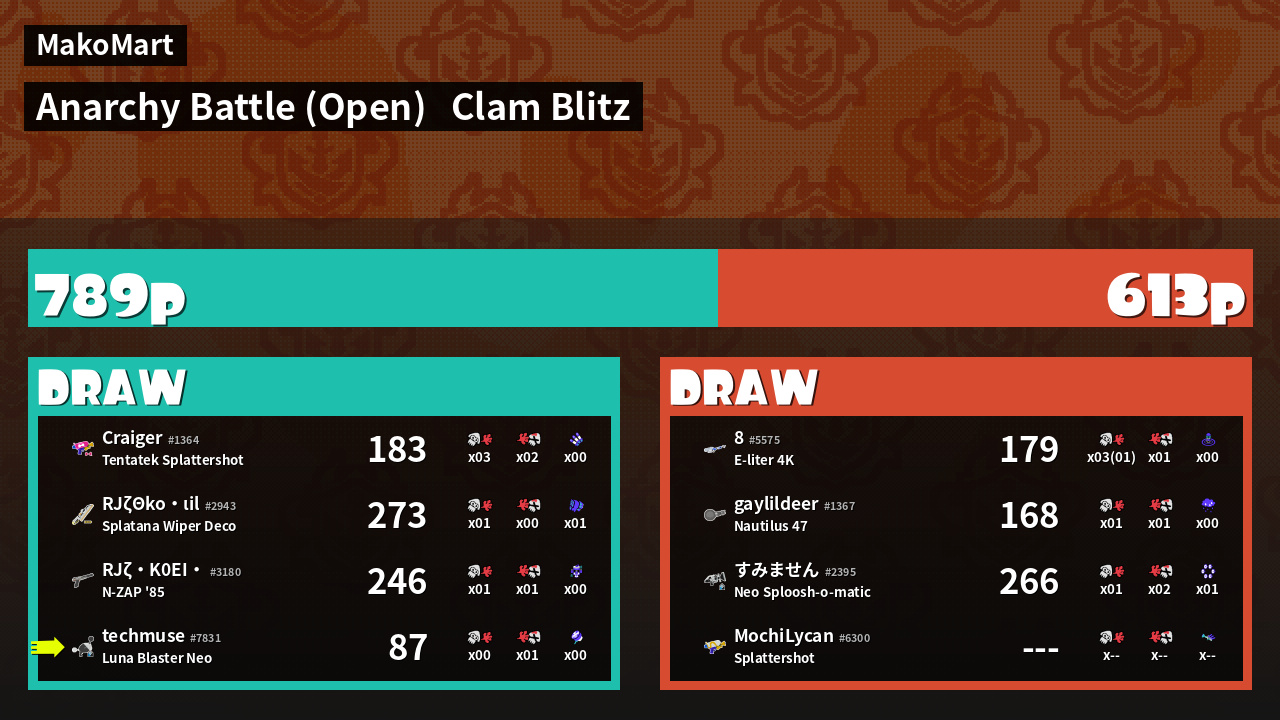 | Mode | Clam Blitz - Anarchy Battle (Open) | ||