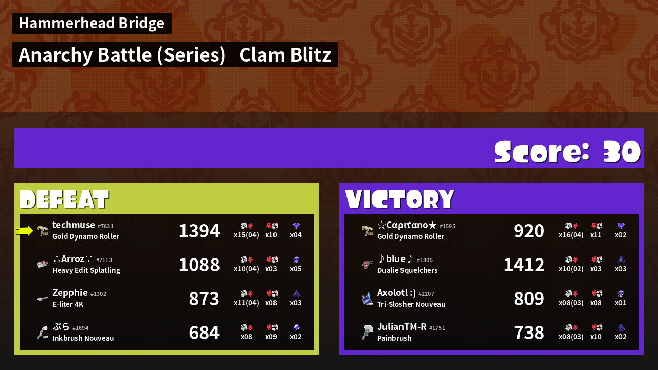 | Mode | Clam Blitz - Anarchy Battle (Series) | ||