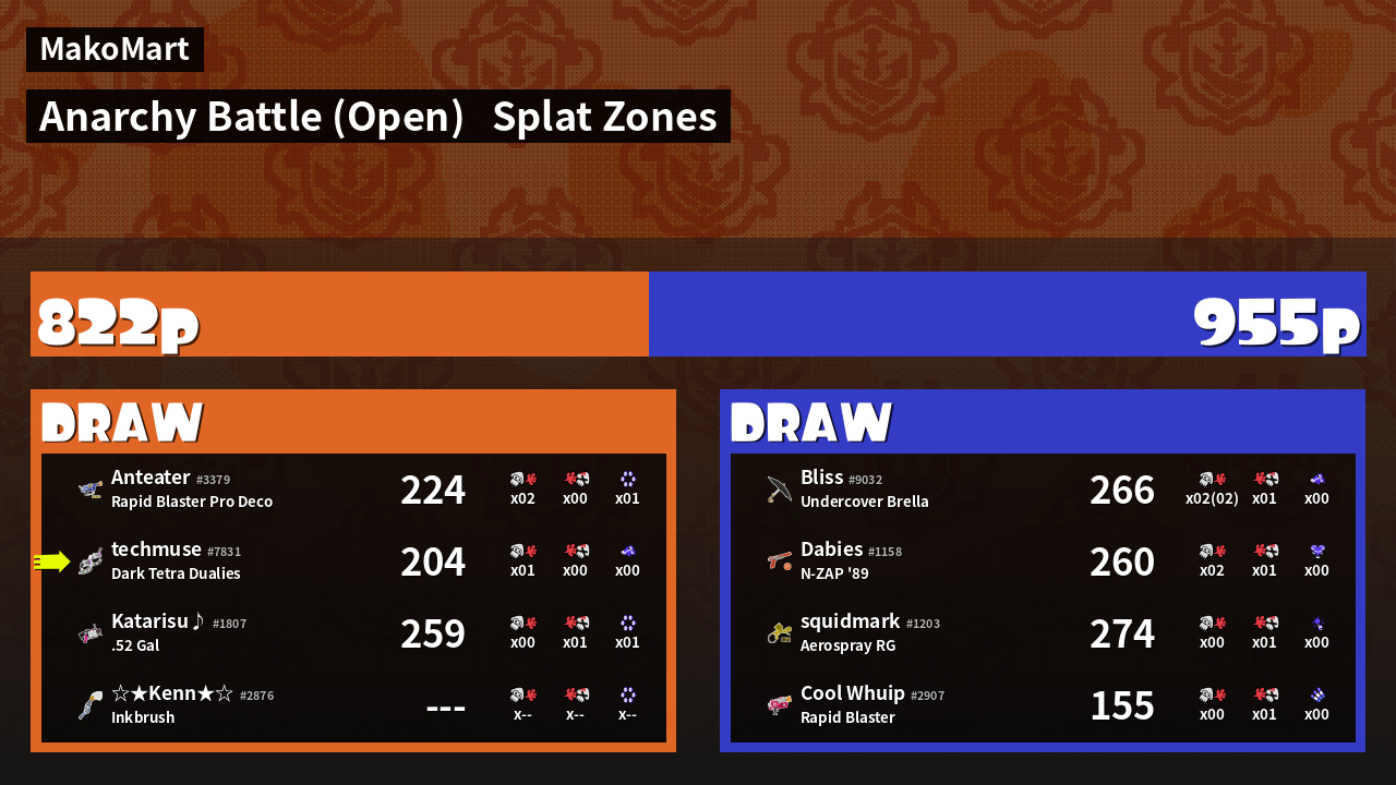 | Mode | Splat Zones - Anarchy Battle (Open) | ||