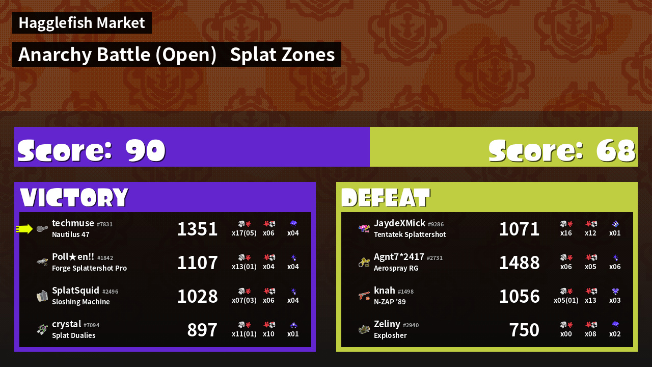 | Mode | Splat Zones - Anarchy Battle (Open) | ||
