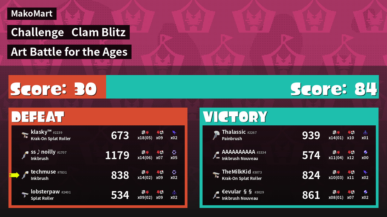| Medals | #1 Score Booster #1 Clam Carrier #1 Clam Stopper | ||